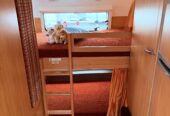 Nabízíme velmi zajímavě uspořádaný malý karavan s palandou a velkou lednicí!